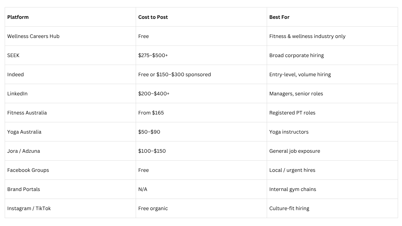 In this 2025 hiring guide, we break down the top job platforms for fitness and wellness hiring in Australia, including costs, strengths and ideal use cases — so you can save time and focus on the right people.
